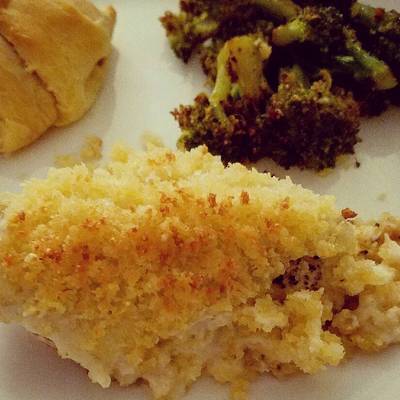 The panko bread crumb chicken needs a relatively short time in the oven, not enough time for the breadcrumbs to become golden and crispy.